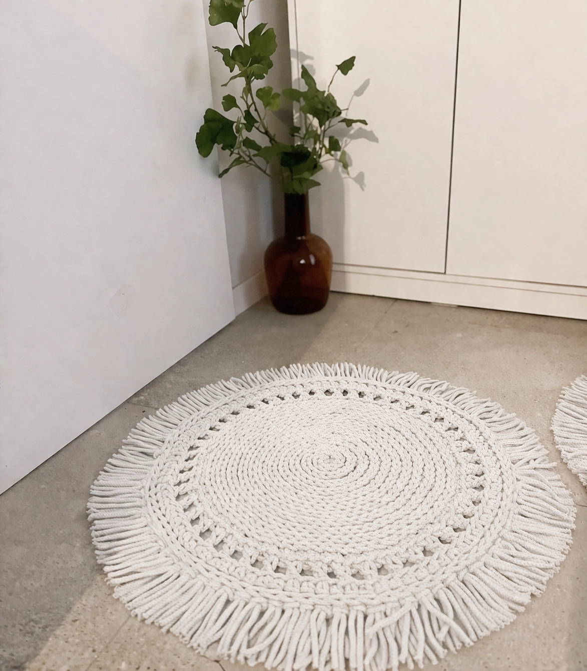 Okrągły Dywanik Boho 60 cm z gęstym, podwójnym wykończeniem biały