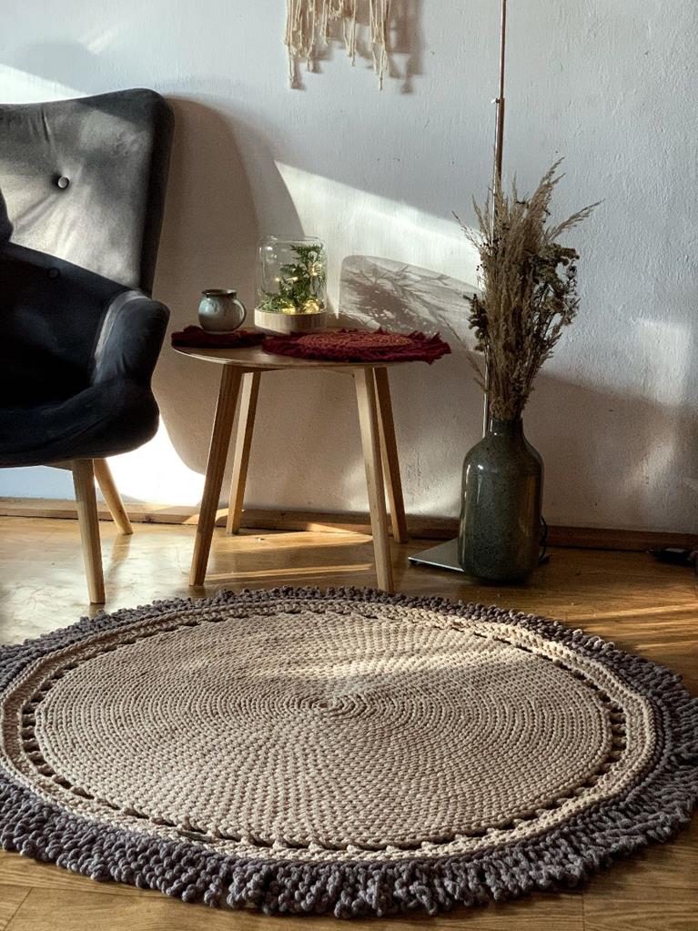 Wykonany przez nas ręcznie okrągły bawełniany dywan Boho Twist ma oryginalne wzornictwo i będzie unikalną dekoracją twojego domu.