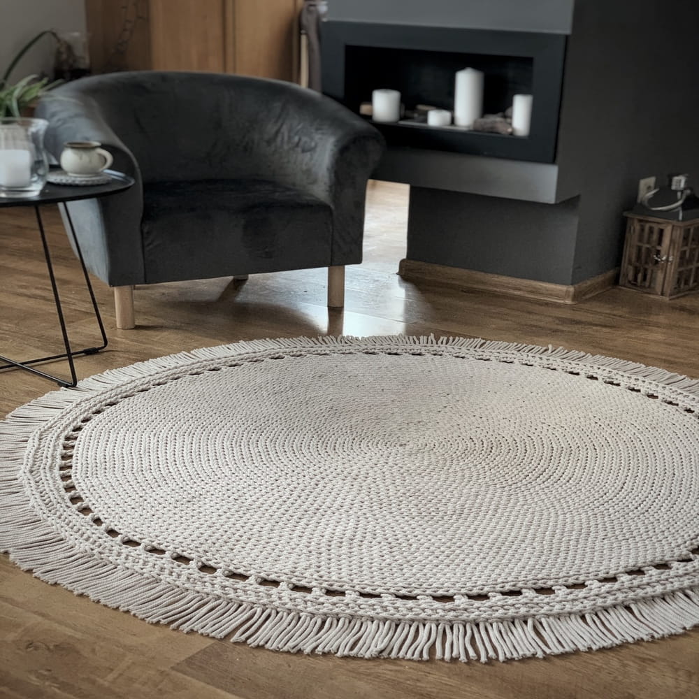 W przeciwieństwie do cienkich dywanów z syntetycznych materiałów, ten model jest wykonany ręcznie z bawełny – dzięki temu jest grubszy, bardziej stabilny i wygląda naturalnie.