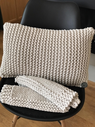 Poduszka składa się z wewnętrznego wypełnienia oraz dzierganego zewnętrznego pokrycia .Mięciutka i przytulna wypełniona poszewką z włókniną silikonową najwyższej z certyfikatem Oeko-Tex®Standard100.